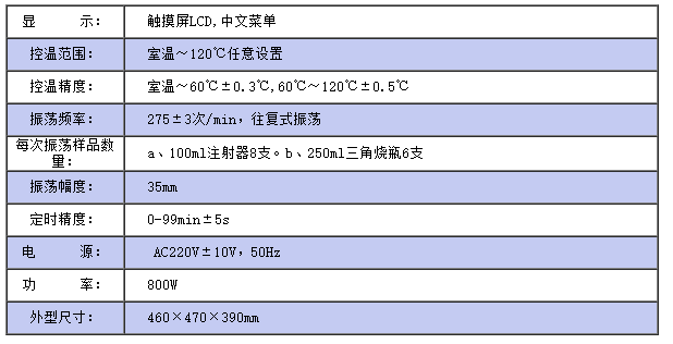 儀器符合GB/T259;GB7598;SD304的標(biāo)準(zhǔn),用于油中溶解氣體組分含量測(cè)定法(氣相色譜法)的振蕩脫氣、油中水溶解性酸測(cè)定法(比色法)對(duì)樣品的振蕩,也用于其他理化實(shí)驗(yàn)中的恒溫、定時(shí)振蕩。儀器采用觸摸屏液晶顯示器,中文菜單,操作更方便直接,采用電熱管加熱,利用先進(jìn)的模糊加熱方式,升溫快速,控溫準(zhǔn)確。儀器具有開(kāi)蓋停止加熱和停止振蕩功能,并具有溫度校正功能,保證了溫度準(zhǔn)確可靠,減輕了實(shí)驗(yàn)人員的勞動(dòng)強(qiáng)度,提高了工作效率。