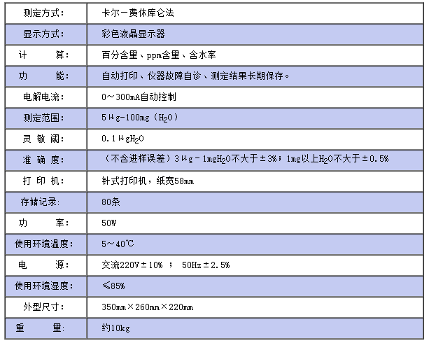 儀器符合GB/T7600及采用卡爾—費(fèi)休法測(cè)定樣品中水分的有關(guān)標(biāo)準(zhǔn),適用于石油化工產(chǎn)品、充油電器設(shè)備絕緣油及礦物原料等物質(zhì)中水分的測(cè)定。 該儀器采用了大屏幕彩色液晶顯示,中文菜單,人機(jī)對(duì)話更直觀,操作更簡(jiǎn)便,具有自動(dòng)換算自動(dòng)打印和保存測(cè)定結(jié)果等功能,與同類儀器相比,大大提高了測(cè)試靈敏度。